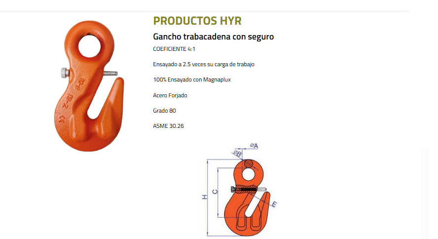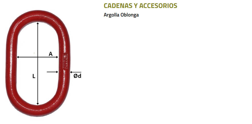 Cadena (Nº) Dim. Ext. Largo x Ancho (mm) Carga de Trabajo (kg)