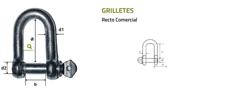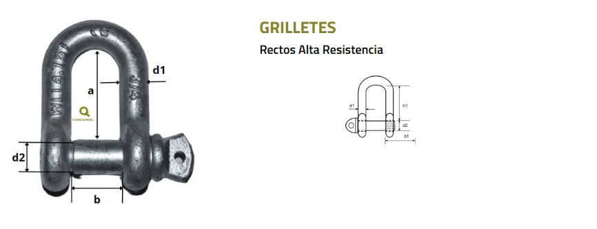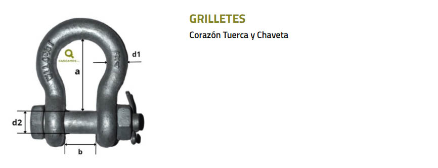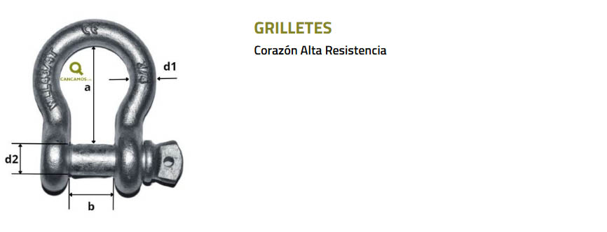 Modelo Carga Límite Trabajo Dim. A (pulg.) Dim. B (pulg.) Dim. C (pulg.) Dim. E / D (pulg.) Ø Grillete (pulg.)