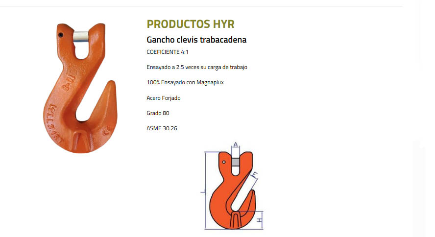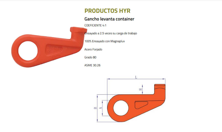 Largo Total (mm) Diámetro (mm) Boca (mm) Largo Interior (mm) Carga de Trabajo (kg)