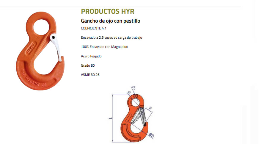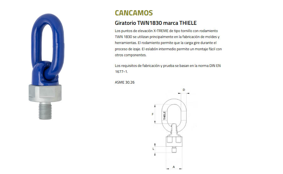 ROSCA MÉTRICA (M) L (mm) CARGA DE TRABAJO (Kgrs)