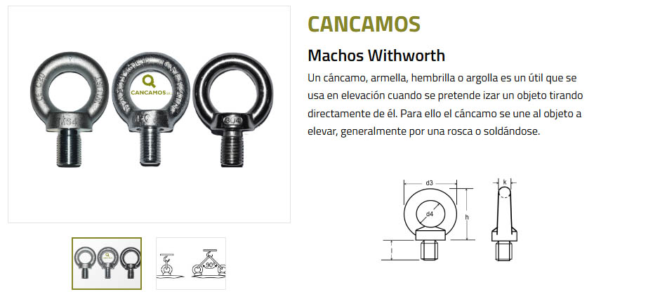 ROSCA (pulg.) d2 (mm) d3 (mm) d4 (mm) h (mm) k (mm) TIRO DIRECTO (Kg) TIRO 90° (Kg)