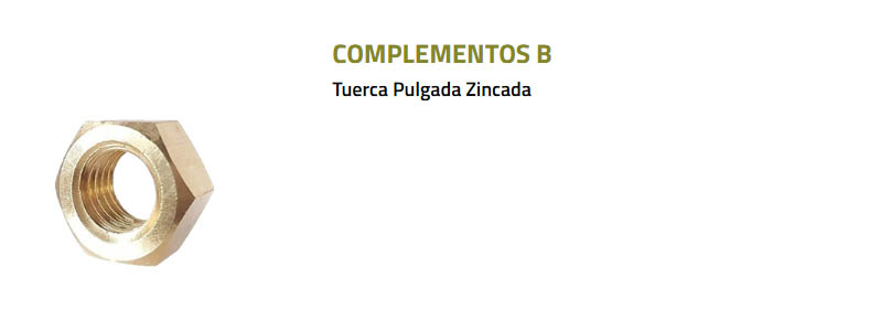 Especificaciones Tuerca en Pulgadas Zincada