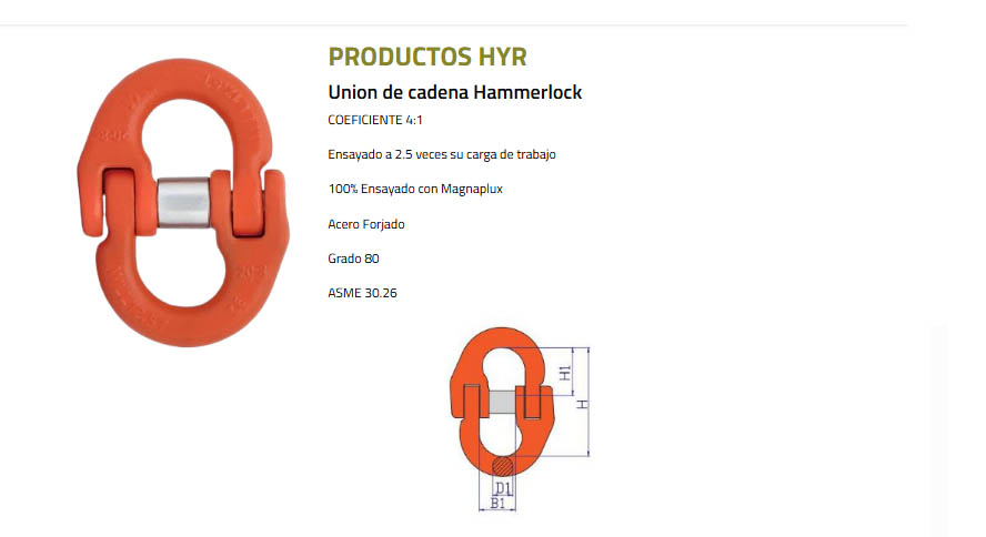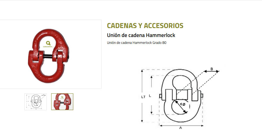 Especificaciones Unión de Cadena con Tuerca